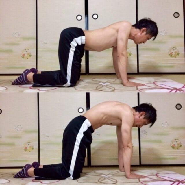 1.床に両手と両ひざをつき四つん這い。
