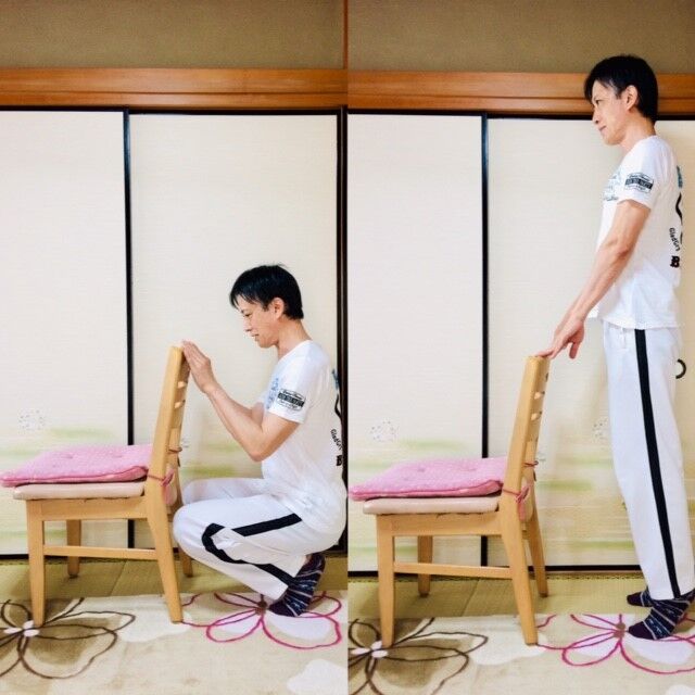椅子から手を放して行う