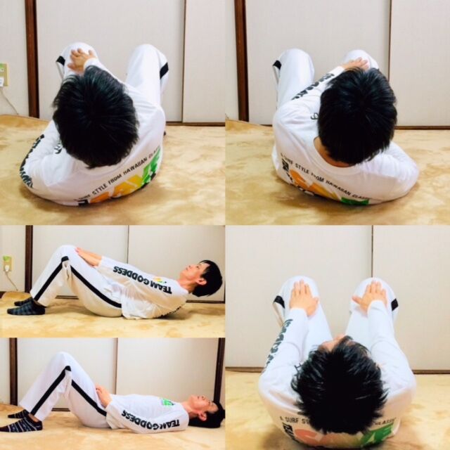 床に柔らかなモノを敷いて行う。